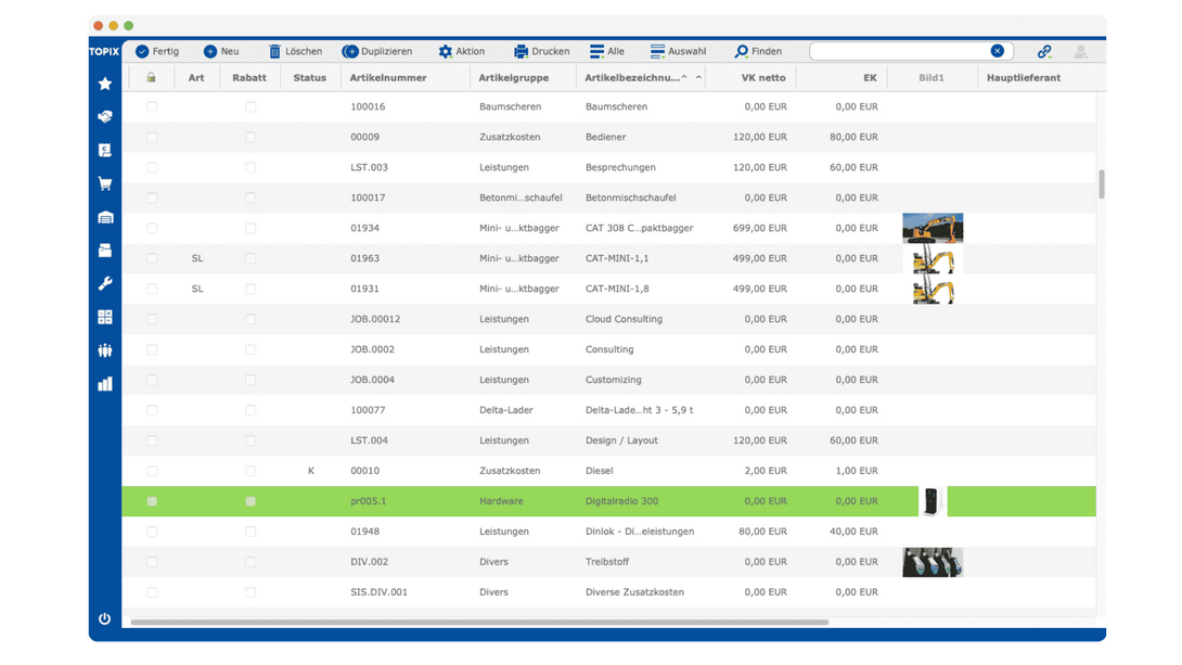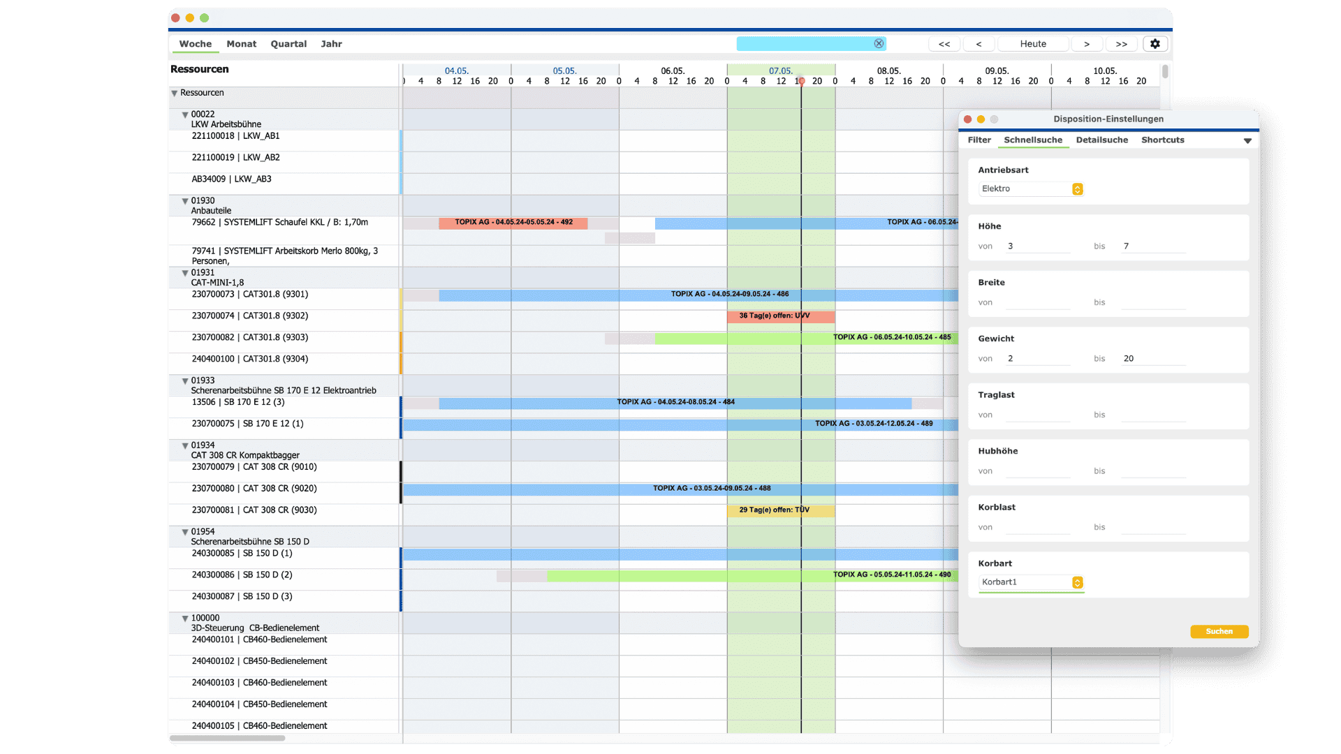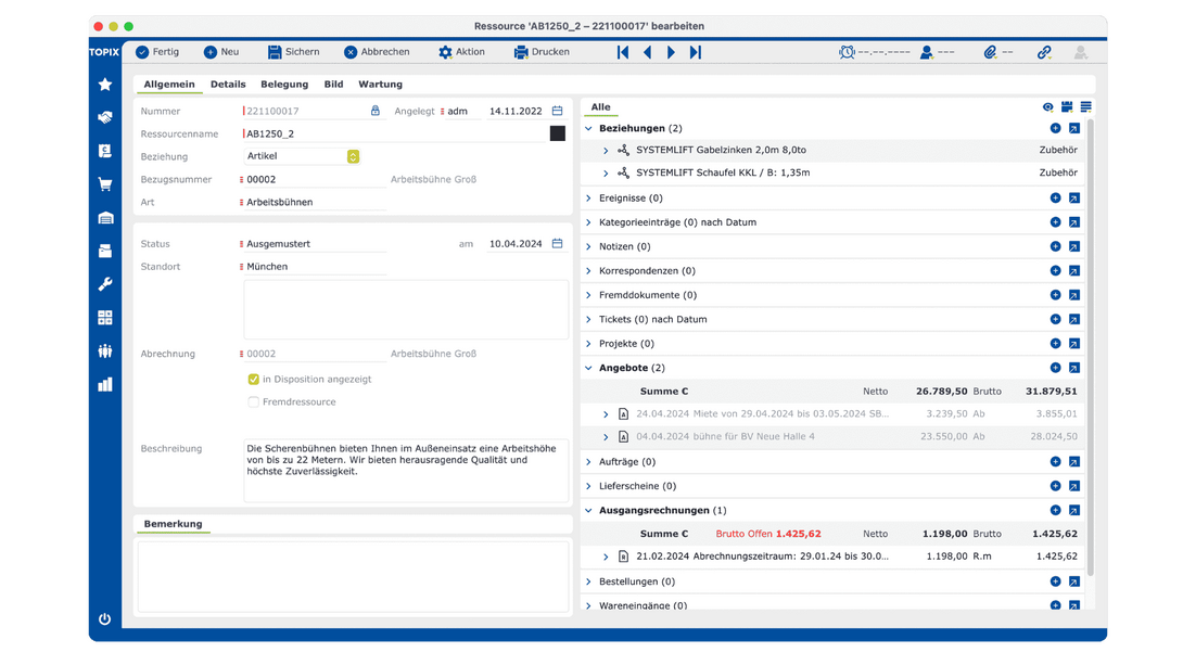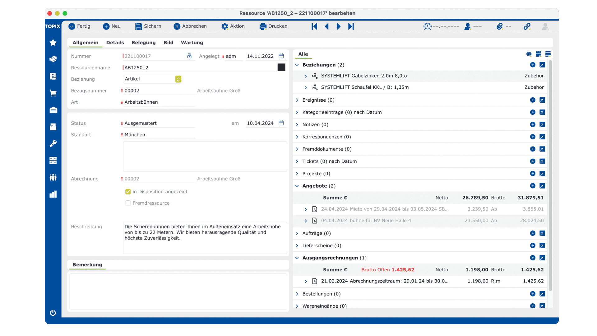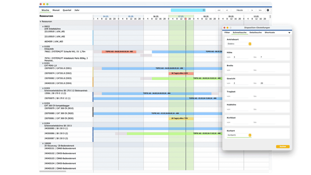 Gut vermieten. Schneller abrechnen. Maschinen und Geräte im Griff: TOPIX verzahnt Disposition, Werkstatt, Service, Rücknahme, Kundenverwaltung und Buchhaltung.