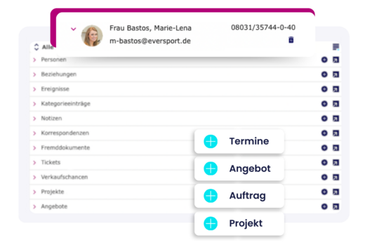 TOPIX trägt die Informationen aus allen Bereichen zentral zusammen. So sind alle relevanten Informationen stets verfügbar, Doppelerfassung wird unnötig — das spart Zeit! So haben Sie nicht nur stets den Überblick über alle Daten – es erleichtert auch die alltägliche Arbeit. Ein Beispiel: Aus Vorgangsdaten lassen sich Termine und Angebote direkt und ohne weitere Zwischenschritte anlegen.
