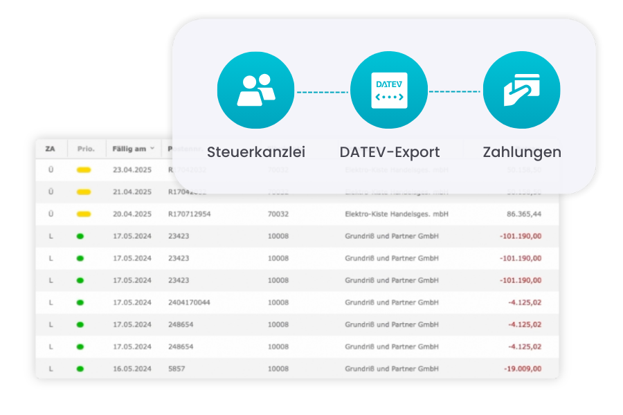 Erleichtern Sie Ihre Buchhaltung mit einer nahtlosen Übergabe an den Steuerberater oder einer integrierten Finanzbuchhaltung.