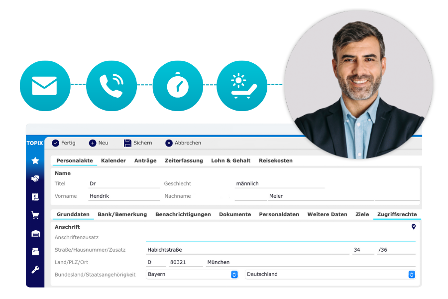 Sie haben bereits ein Team und wollen nicht noch ein externes Tool für Personalthemen anbinden? Prima, TOPIX HR bietet alles was Sie brauchen: