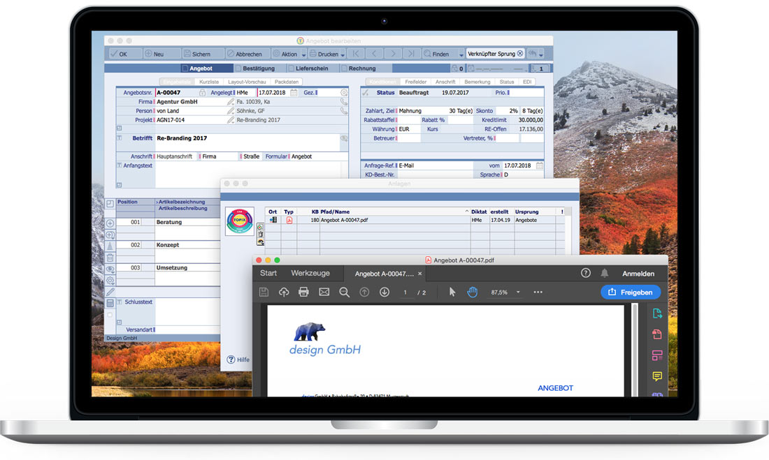 Mit der nahtlosen Integration des Dokumentenmanagements in das TOPIX ERP-System können Dokumente direkt den entsprechenden Vorgängen zugeordnet werden. Dies beschleunigt die Bearbeitung und ermöglicht einen effizienten Workflow ohne Medienbrüche.