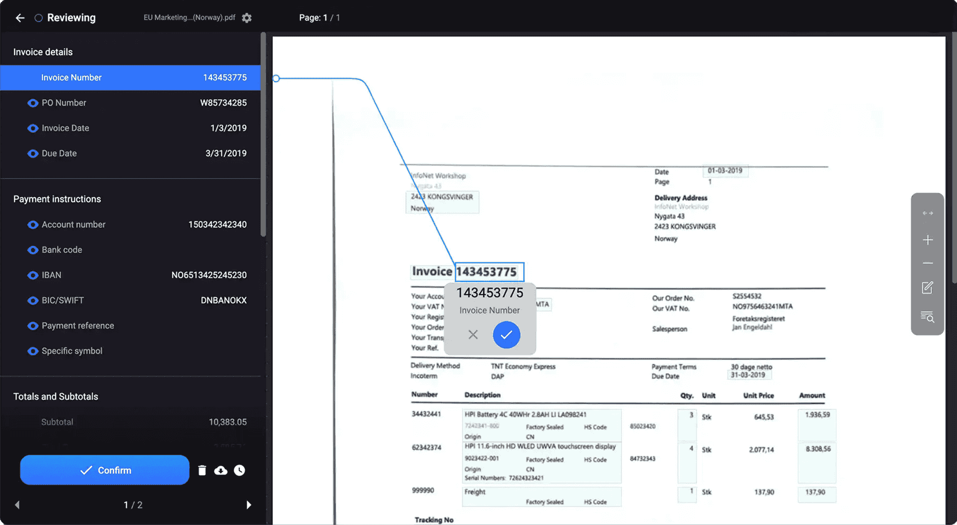 Das TOPIX DMS bietet mit dem Cloud-Service Rossum eine intelligente Möglichkeit, Rechnungsdaten per OCR auf Positionsebene zu erfassen und in TOPIX zu verarbeiten. Rossum verwendet künstliche Intelligenz (KI), um den menschlichen Ansatz zur Datenextraktion aus Geschäftsdokumenten zu replizieren. Vorbei sind die Zeiten von manueller Dateneingabe, die fehleranfällig, zeitaufwändig und teuer ist.